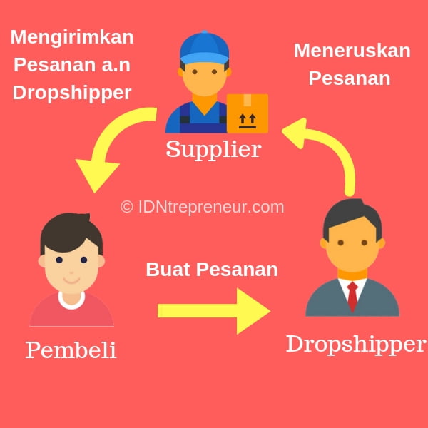Dropshipping adalah proses jual beli dimana pemenuhan order pelanggan dilakukan oleh supplier atau rekanan secara langsung. Prosesnya secara mudah dapat digambarkan sebagai berikut:
